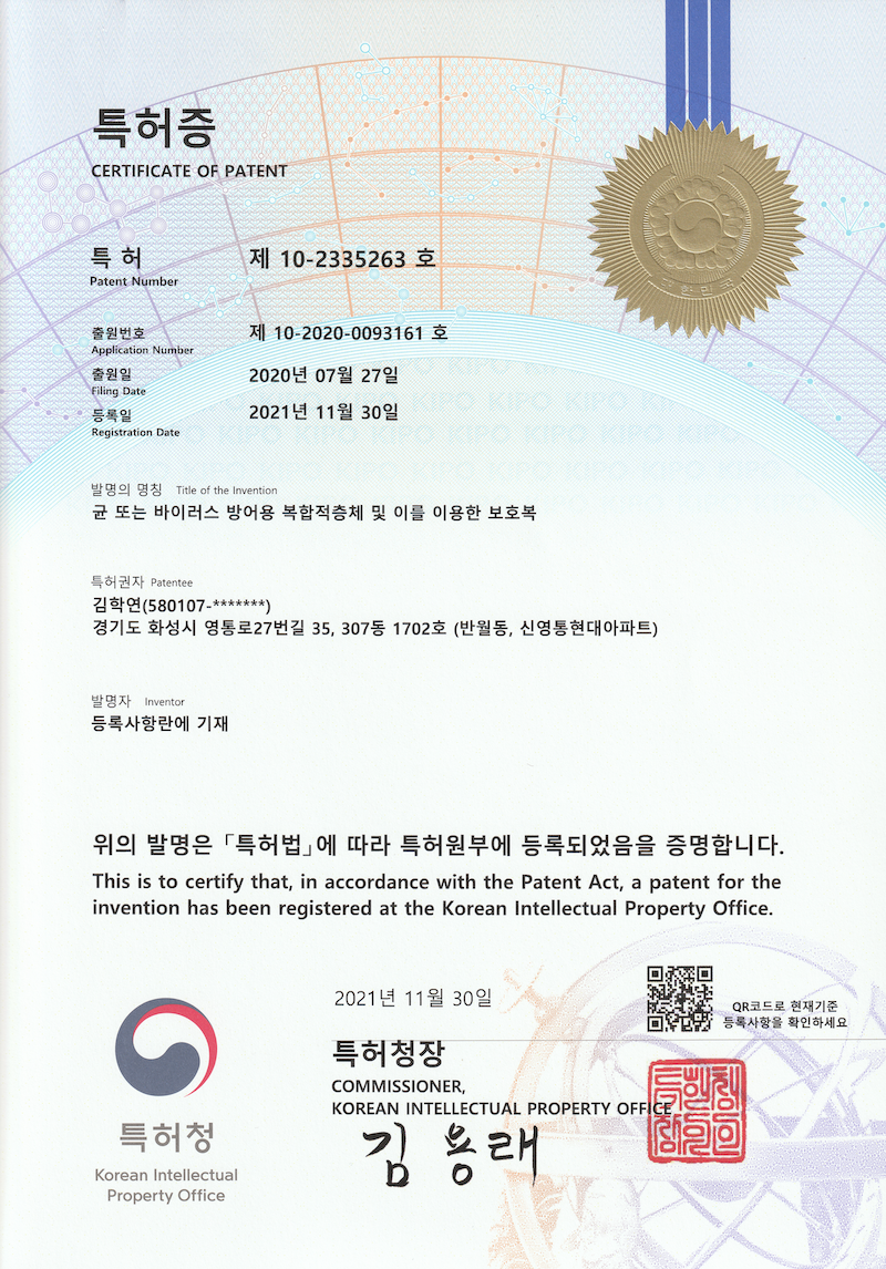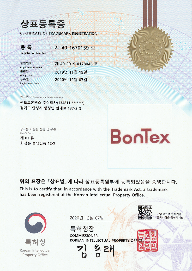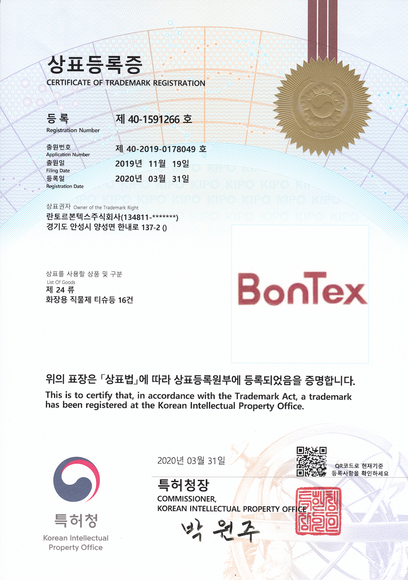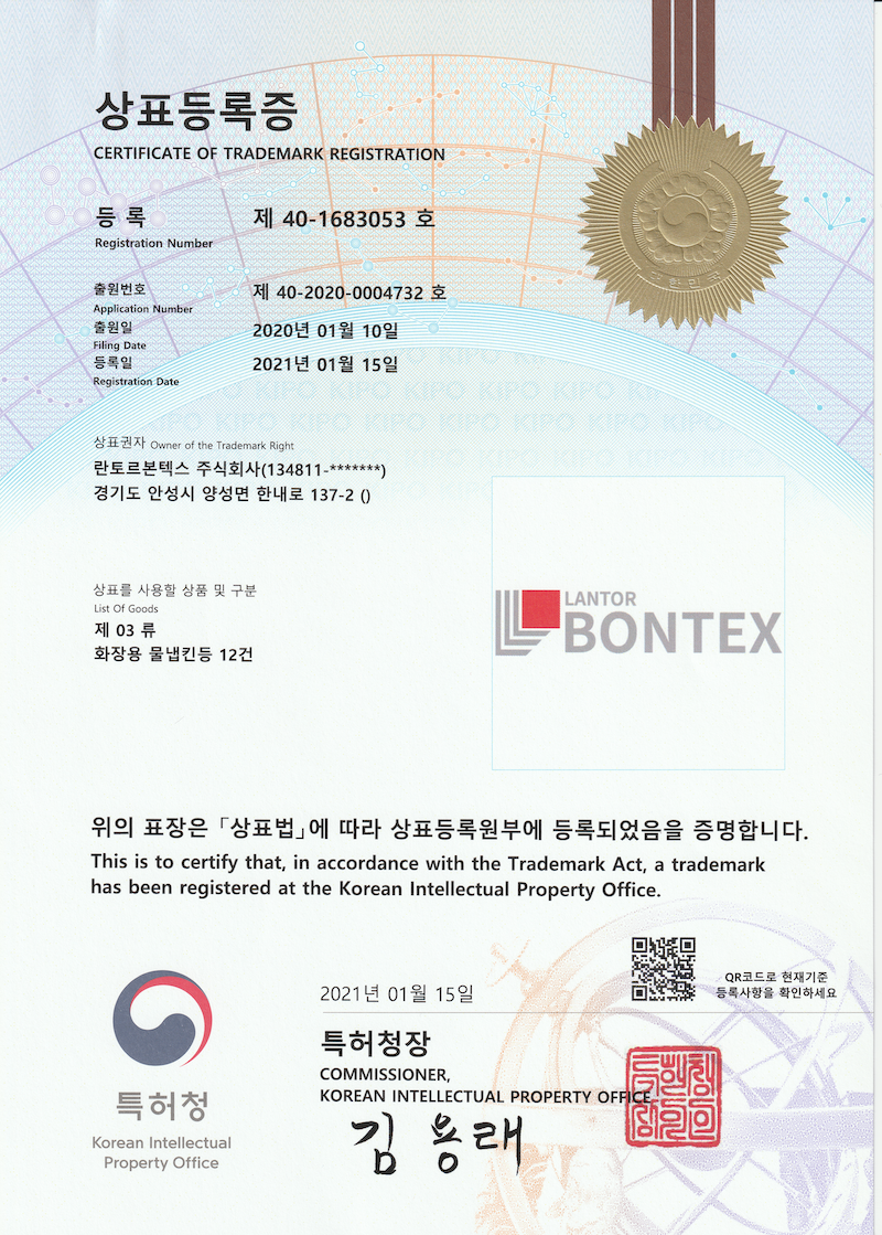 LantorBontex,Bontex상표등록 6건 및 방호복 관련 특허1건 등록